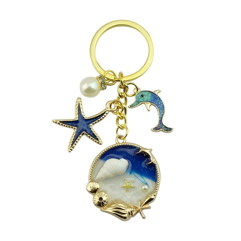 人気ブルーオーシャンパールキーチェーンシービーチペンダントDIYメタルキーチェーンファッションヒトデコンクイルカエナメルジュエリー吊り